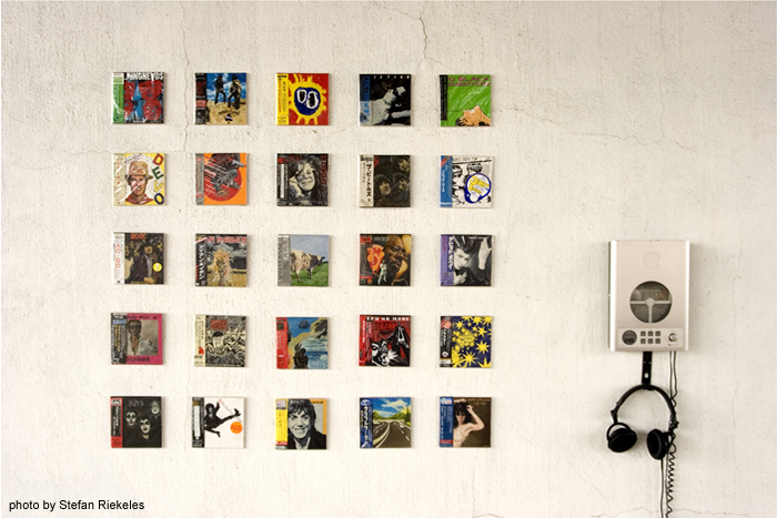 六本木クロッシング2010を観に行く。 ダムタイプ、Chim↑pom、森村勇賢あたりの名前にニヤリとしながら、 その他はおそらく、はじめて作品を見るアーティストばかり。 そんな中でも目を引いたのは、相川勝。 ↑写真を見ても、CD屋のディスプレイにしか見えないかもしれない。 プライマルスクリーム、ジャニスジョプリン、DEVO、SLY、ファンカデリック、アイアンメイデン、クラフトワークなど、音楽ファンが通らざる終えない名盤が並ぶ。 約1mの距離に近づくまで気がつかなかったが、 キャンパスに絵の具を用いたまったくの複製である。 帯や、CDそのものも複製されている。 展示について作者からのメッセージは特になかった。 コピー文化へ対しての皮肉なのかもしれないが、 CDのセレクトを見ると音楽愛が強く感じられるとともに、妙なバランスの偏りも感じる。 以下、彼のホームページ上の一文。 ・・・・・・・・・・・・・・・・・・・・・・ 私は楽器を弾くことが出来ない 数多くのコピーバンドがあるが、自分が1番コピーが上手い。 私は絵画や彫刻よりも音楽をより愛している ミュージシャンにまつわる伝説を聞くのが好きだ。 この作品を作っている時、私は愛し、尊敬しているミュージシャンの様になれる。 私は時々、曲を熱唱している自分をカッコイイと思う時がある。 好きなCD達の中から描くCDを選択するのは大変だが楽しい へヴィメタルのCDジャケットはカッコイイと思う メタリカ(Metallica)よりメガデス(Megadeth)の方が好き いいCDジャケットのCDにはいい曲が多い Greatest Hitsは嫌い。 Itune music storeで曲を買った事はない。 日本人はモノマネが上手い。 Ipodは便利だと思う。 パンク/ハードコアの「D.I.Y」精神に共感する。 私の歌は展示会でしか聴くことができない。 アンディ・ウォーホルの作品が好きだ。 これらのCDは、コピーであると同時に、間違いなく私自身であり、私自身の作品である。 ・・・・・・・・・・・・・・・・・・・・・・・ 上記を見ていくと、この感覚はどうやら同年代ではと感じた。 調べてみると彼は31歳やそこらでやはり同年代であった。 上記からなぜ、同年代という事を想起したのか、決定的にはわからないが、 各単語やキーワードがそうさせてのだろう。 新旧と文化の違いはあるものの、 何かのキーワードが同列にある場合、親近感を持つのは 日常でも同じである。