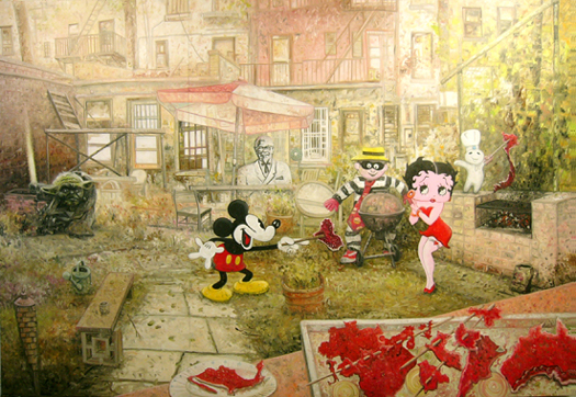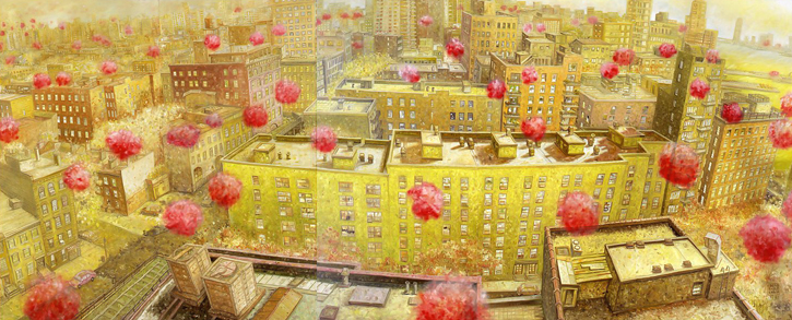 やはりこっちで書いていく事にしました。 久しぶりにninjablog編集画面に来ているわけだけれど、 不思議なもので書いていてもしっくりくる。 紙を選ぶようなものなのかも知れない。 久しぶりに時間があったので、鎌倉にでも行こうと思ったのだけれど、 ことごとく友人と都合が合わず、一人近場の現代美術館へ行く事にした。 大岩オスカールという人の名前は、ブラジル現代芸術の本を読んだ時に見かけていたが、 作品の事は覚えていなかった。 土曜の昼ということで、普段はガラガラの現代美術館もそこそこ人がいる。 客層はなぜか2人組みのおばちゃん(微マダム)が中心。 その他は、デート組みと美大生といったところか。 20代後半~40代の男は必ずといっていいほど、一人で来ている。 そんな男に限って熱心に作品の前でジッとしている。 昔は、そんなオッサン達をみて、何者なのかと不思議に思っていたのだけれど、 自分自身、そんなおっさん達となんら変わらないことに気がつく。 きっとおっさん達も暇で来ているだけの話だ。 当日券を買おうと受付に並んでいると、横から「すみません」と声がかかる。 そちらを振り向くと”昔はかなりモテたのよ”と言わんばかりの30代女性誌の表紙を飾るモデルのようなスタイルの女性がいる。 イヤホンをしていたこともあり、人違いか聞き違いだとおもい正面を向き返す。 「すみません、これからチケット買いますか?」 今度は顔を覗かせてきた。あきらかに私に言っている。 「これあげます。」 と差し出してきたのは、大岩オスカールの前売り券である。 突然の事に、 「あっ・・・どうも」と曖昧な答えをしている間に、その女性は出口のほうへ行ってしまう。 なぜか不機嫌な顔をしていた女性から、チケットをもらい、得した気分で展示会場へ向かう。 きっとさっきの女は、彼氏か愛人かなんかにすっぽかされた違いない。 目的がなく、作品を観に行くというもの、気持ちの持ちようが難しい。 リアリティだったり、ユーモアだったり、作者によって伝えたいものだ違っている。 大雑把に言えば、爆笑しながら観る作品もあれば、眉間にしわ寄せして観る作品もあるということを言いたいのだが、もちろん作品の前でそんなことは無意味だということもわかる。(もはや社会的芸術鑑賞というヤツである。) なんともいえない気持ちで、展示室へはいると、街、都市、動物、花など日常に溢れる景色がぼんやりを飾られている。 ぼんやりという表現がぴったりである。 写真のような作品ではあるのだけれど、どこかぼんやりしている。 さらに、そこに想像物が氾濫していたりする。 上の絵のように、都市の上空に花がまっていたり、その他の絵では、カラスや犬が影となり、町に馴染んでいたりと、普段観ることのできる景色が合い重なって、異様な空気感が出ている。 ”夢のような”といってしまえば、それっきりである。 ぼんやりしながら、1枚1枚観ていると、あっという間に最後の展示室。 気の持ちようが大きく変化するでもなく、 変な街を散歩しているような感覚のままに出口へ向かう。 帰りに写真が撮りたくなって、木場公園をフラフラしながら適当に何枚が撮った。 |